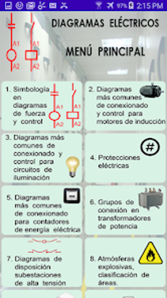 Diagramas Eléctricos, elektrik diyagramları hakkında hızlı bilgi sunan bir uygulamadır. Bu uygulama, kullanıcıların hem konut hem de endüstriyel alanda sıkça kullanılan elektrik diyagramlarına erişimini sağlar. Uygulama, ANSI ve IEC standartlarına göre semboller, motorlar için güç ve kontrol diyagramları, aydınlatma için diyagramlar gibi çeşitli içerikler sunmaktadır. Ayrıca, enerji sayaçları bağlantı diyagramları ve yüksek gerilim alt istasyonlarının düzeni gibi detaylar da mevcuttur. Uygulama, kullanıcıların elektrik sistemlerini nasıl bağlayacaklarına dair basit bilgiler vermektedir.